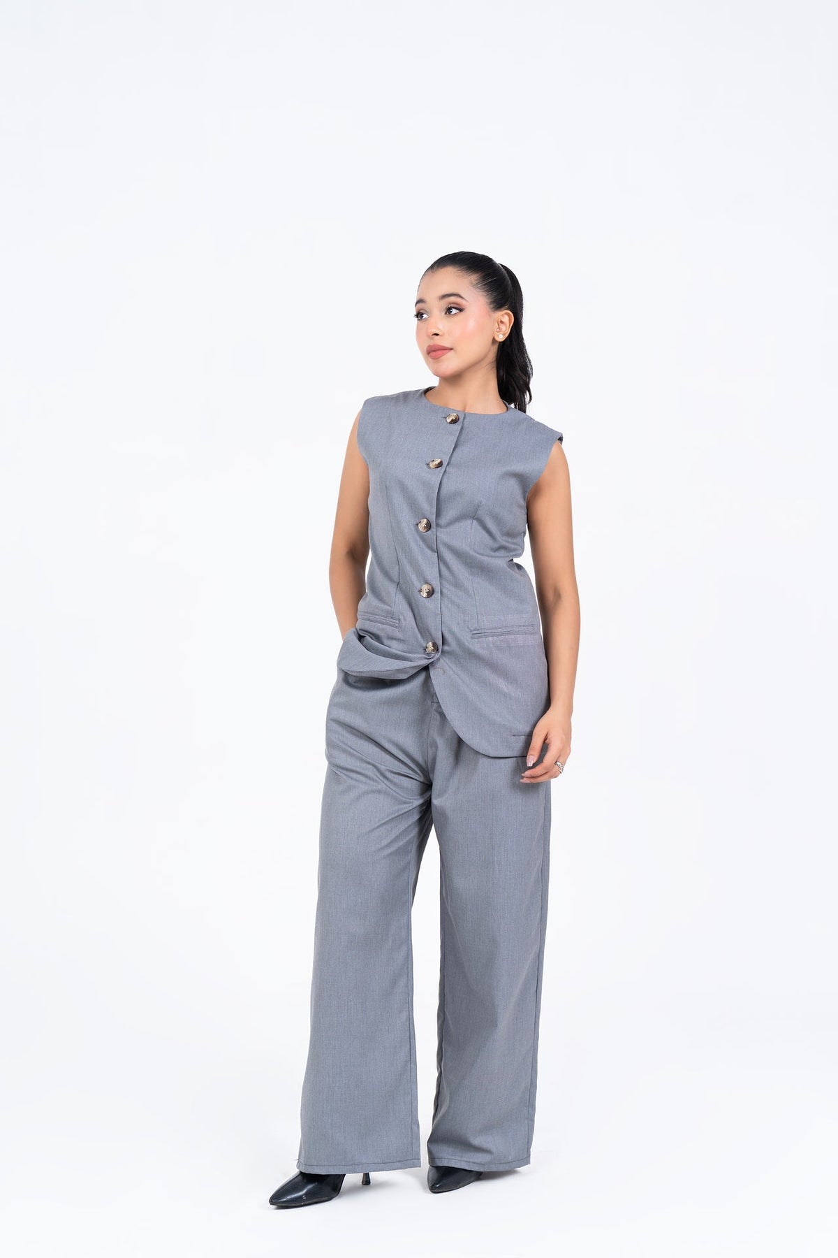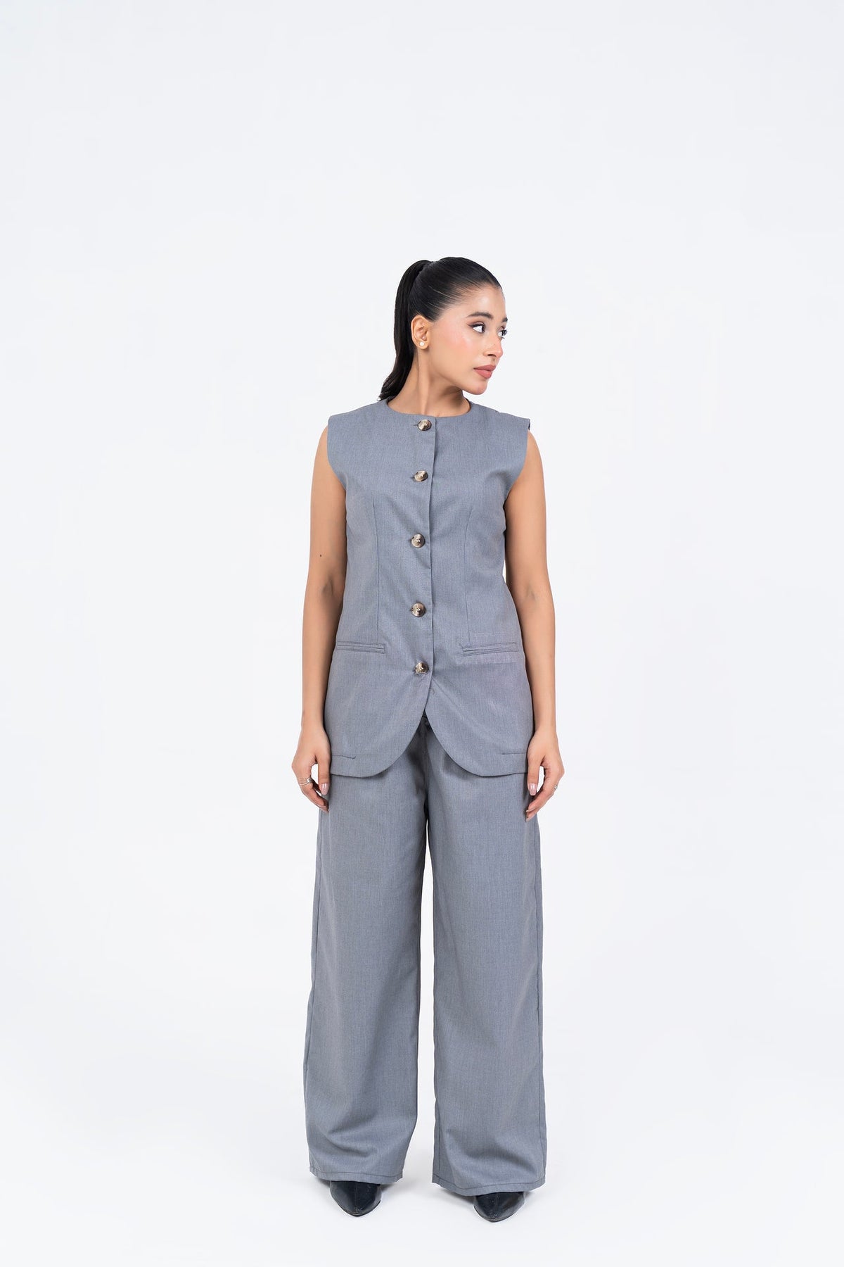 This women’s gray waistcoat is a versatile wardrobe staple that combines sophistication with comfort. Its neutral gray shade makes it easy to style with both formal and casual outfits. Designed in a slim-fit tailored cut, it enhances your silhouette while ensuring ease of movement. Crafted from premium fabric, it offers durability and lightweight comfort for all-day wear. Perfect for office attire, events, or casual layering, this waistcoat adds timeless charm to any look.
