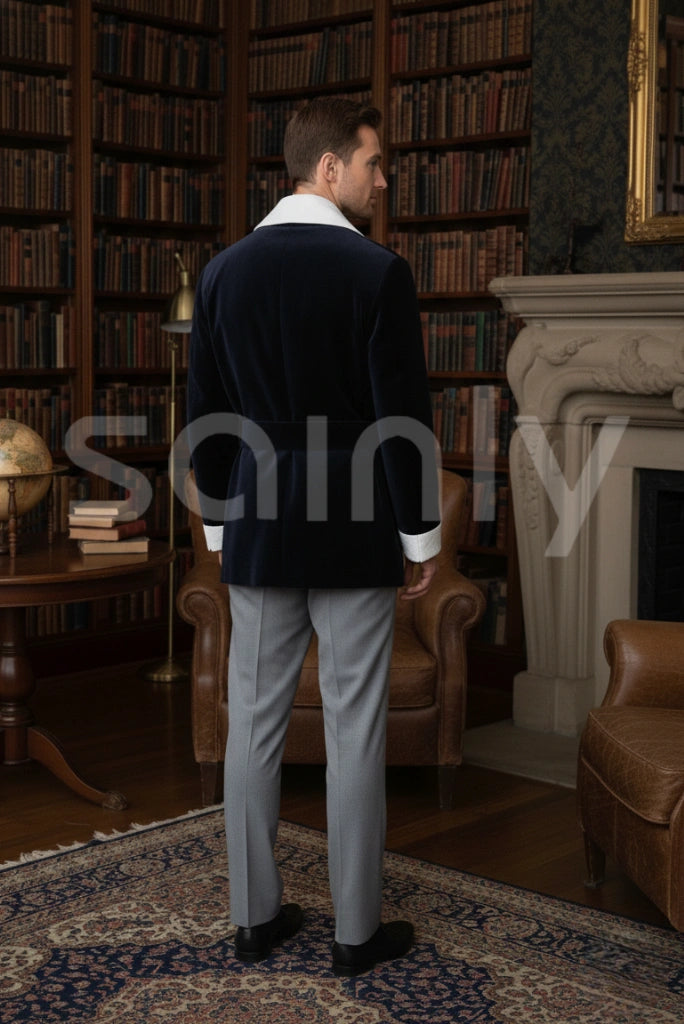 This stylish men’s smoking jacket is a must-have addition to your wardrobe. Add it to your collection for an elegant, refined, and timeless evening look.