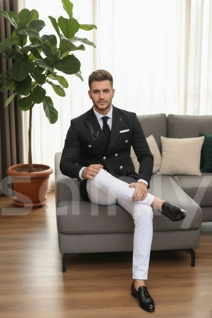 Men Black Double-Breasted 2 Piece Suit | Elegant Wedding Wear Outfit