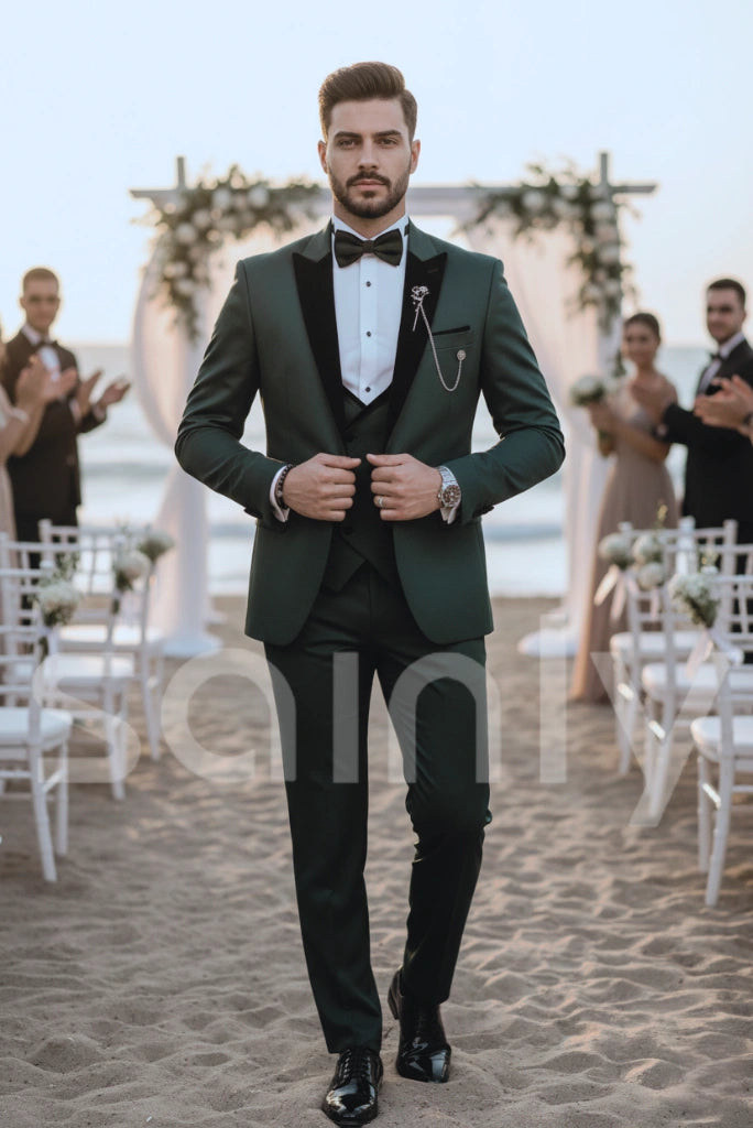 Men Suits 3 Piece, Green Suits For Men, Slim fit Suits, One Button Suits, Tuxedo Suits, Wedding Groom Suit, Bespoke For Men