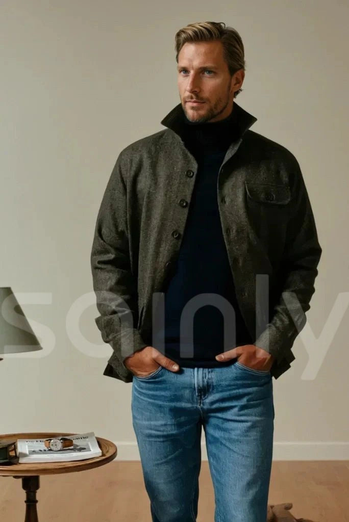 Men Olive Green Tweed Wool Vintage Shacket | Winter Outerwear Jacket